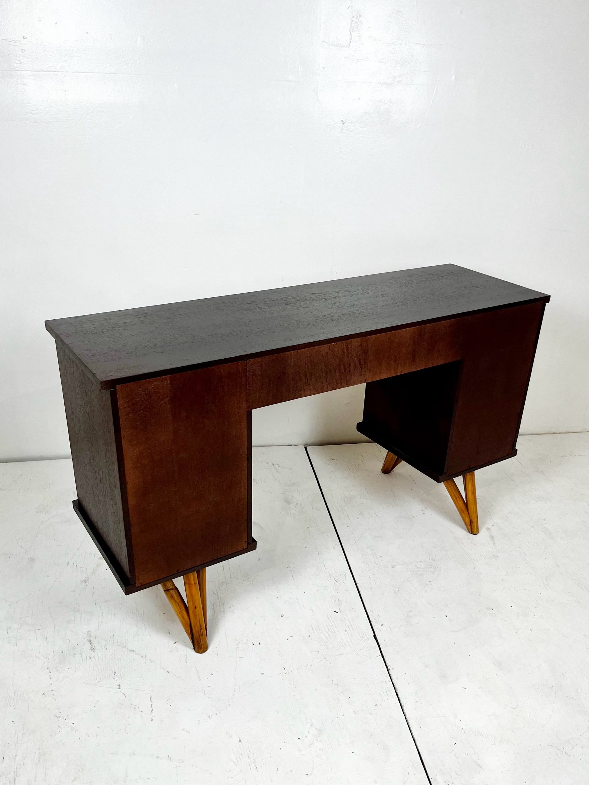 Mid Century Bamboo Rattan Mahogany Desk